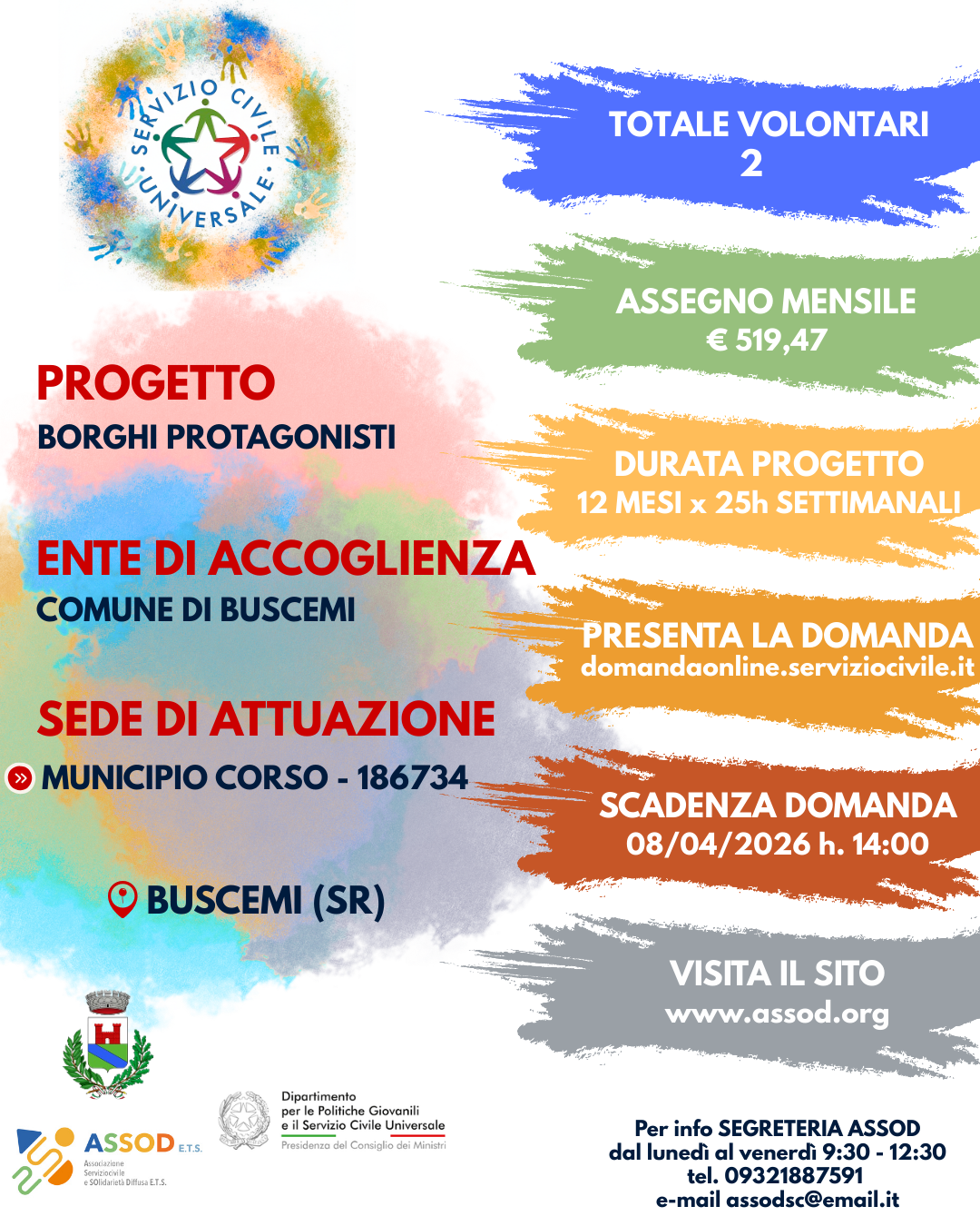 Il Comune di Buscemi ricerca n. 2 operatori da impegnare nel progetto Borghi Protagonisti”